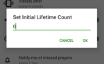 Set initial lifetime count, as the phrase suggests is used to set an initial count for the prayer counter app. There can be various reasons why you would like to set an initial count and some of them could be: